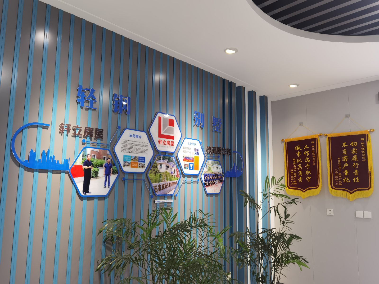 在石家莊軒立集成房屋有限公司的3號(hào)樣板樓中,掛滿了很多錦旗和榮譽(yù)資質(zhì),滿墻的榮譽(yù)承載著軒立以往努力的成績(jī),是軒立全體員工共同努力發(fā)展的體現(xiàn),也是軒立深耕輕鋼建筑行業(yè)十年的見證。